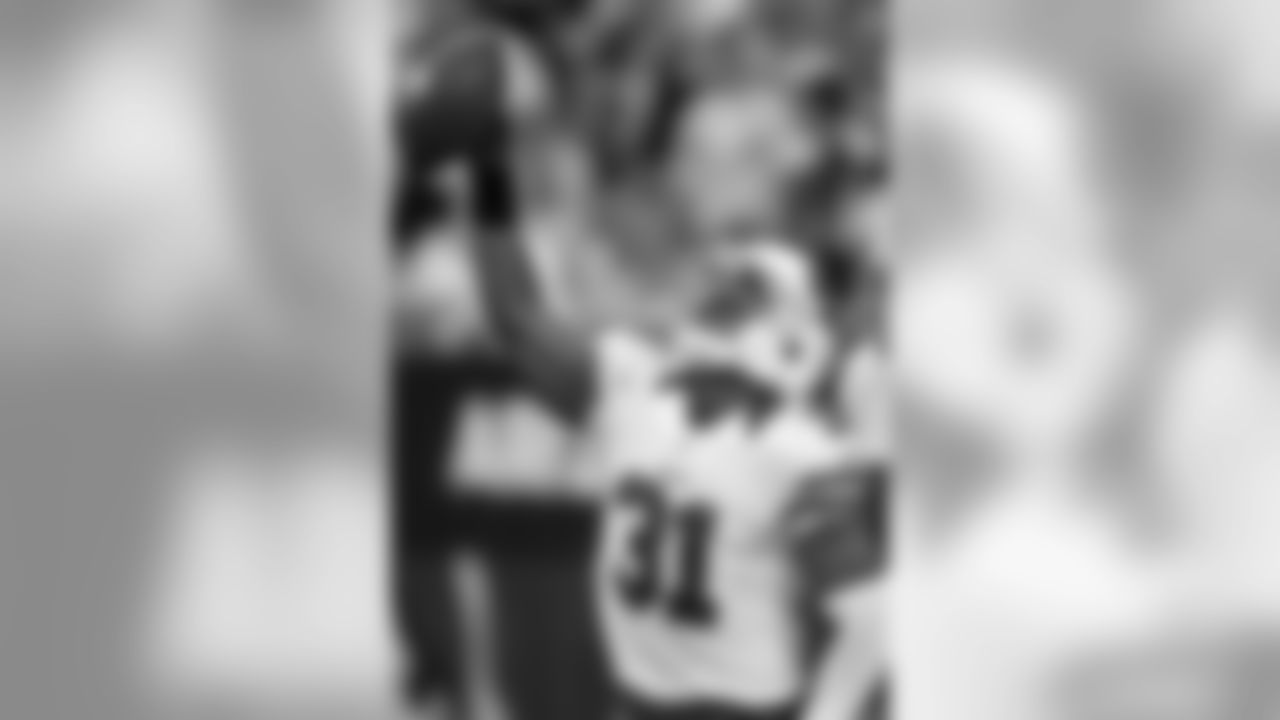 Buffalo Bills free safety Jairus Byrd (31) runs back an interception to set up the game-winning field goal against the Arizona Cardinals during the second half of an NFL football game on Sunday, Oct. 14, 2012, in Glendale, Ariz. The Bills won 19-16 in overtime. (AP Photo/Rick Scuteri)