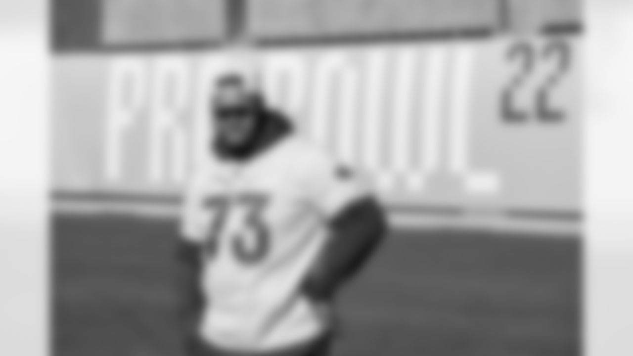 Dion Dawkins (73) during the AFC Pro Bowl practice on Feb 3, 2022 at the Las Vegas Ball Park in Las Vegas, Nevada. Photo by Ben Green