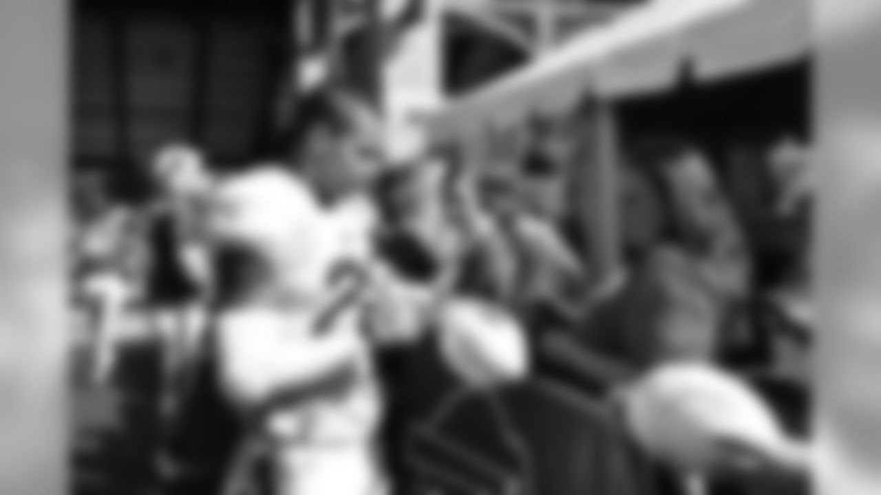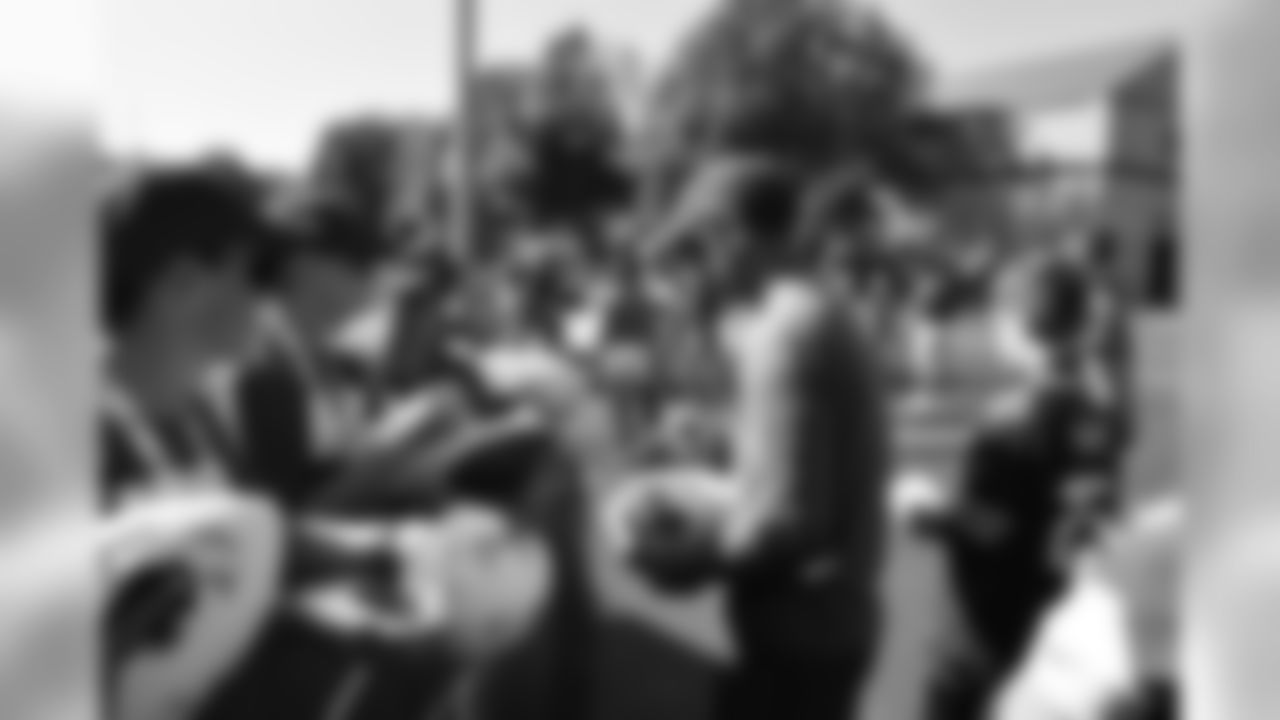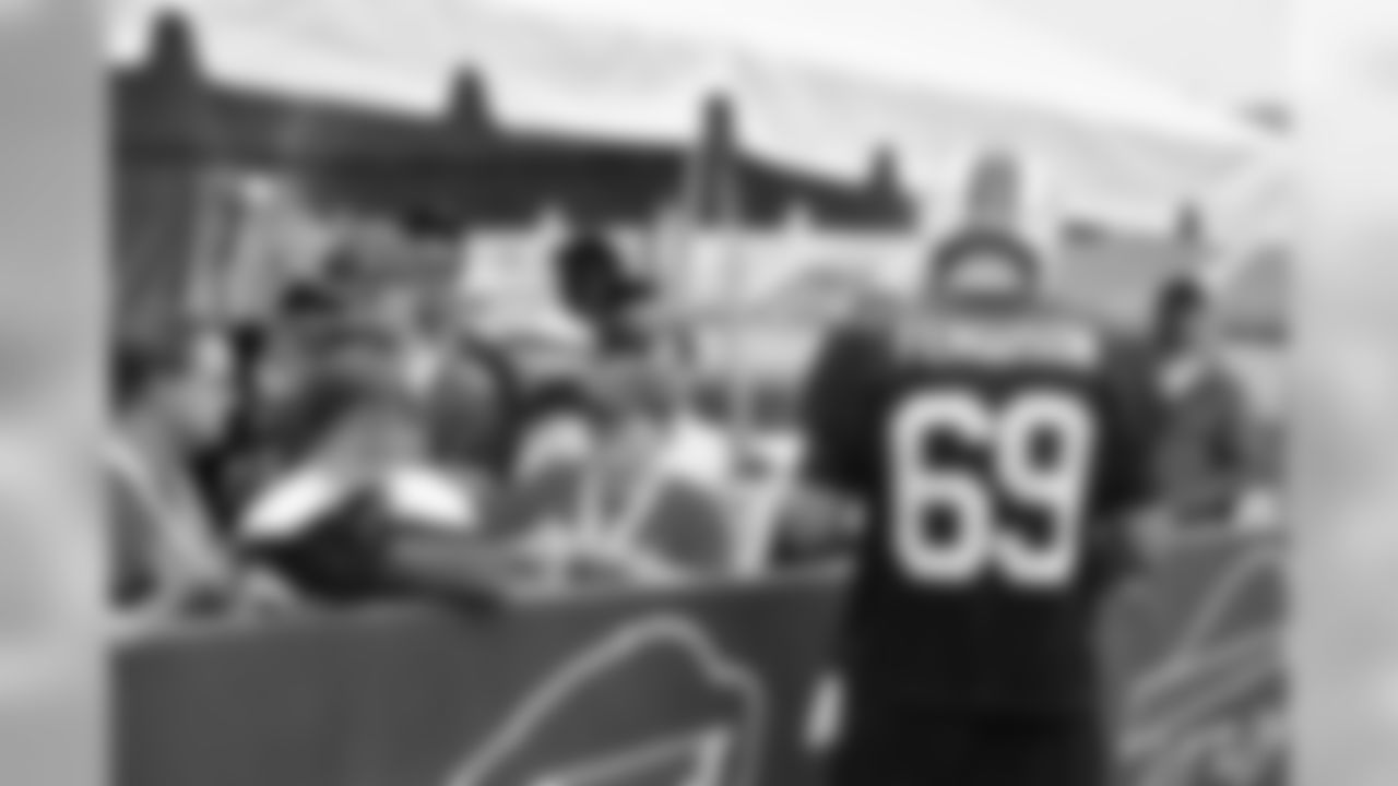 Photos of the Bills signing autographs for fans during the team's final week at St. John Fisher College. Camp autographs are presented by Eaton Office Supply.