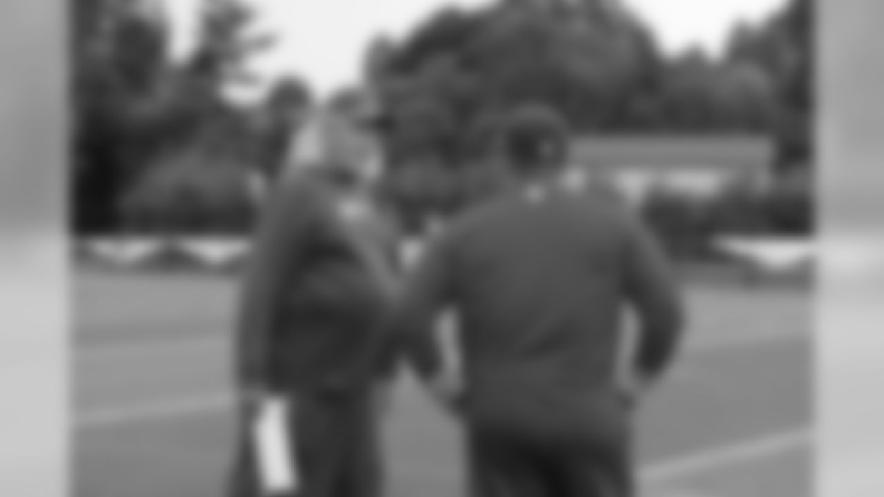 Assistant Head Coach/Defense Rob Ryan talks on the sidelines during practice.