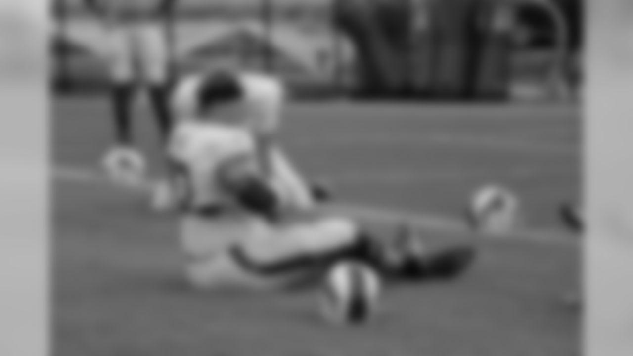 Long snapper Reid Furgeson (69) stretches during practice.