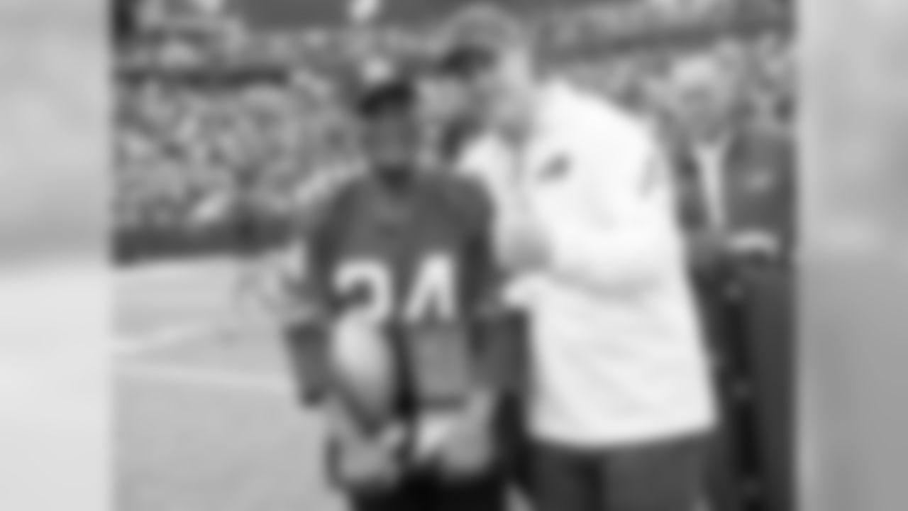Buffalo Bills running back Karlos Williams, right, is held up by teammate John Miller after scoring a touchdown during the first half of an NFL football game against the Indianapolis Colts on Sunday, Sept. 13, 2015, in Orchard Park, N.Y. (AP Photo/Bill Wippert)