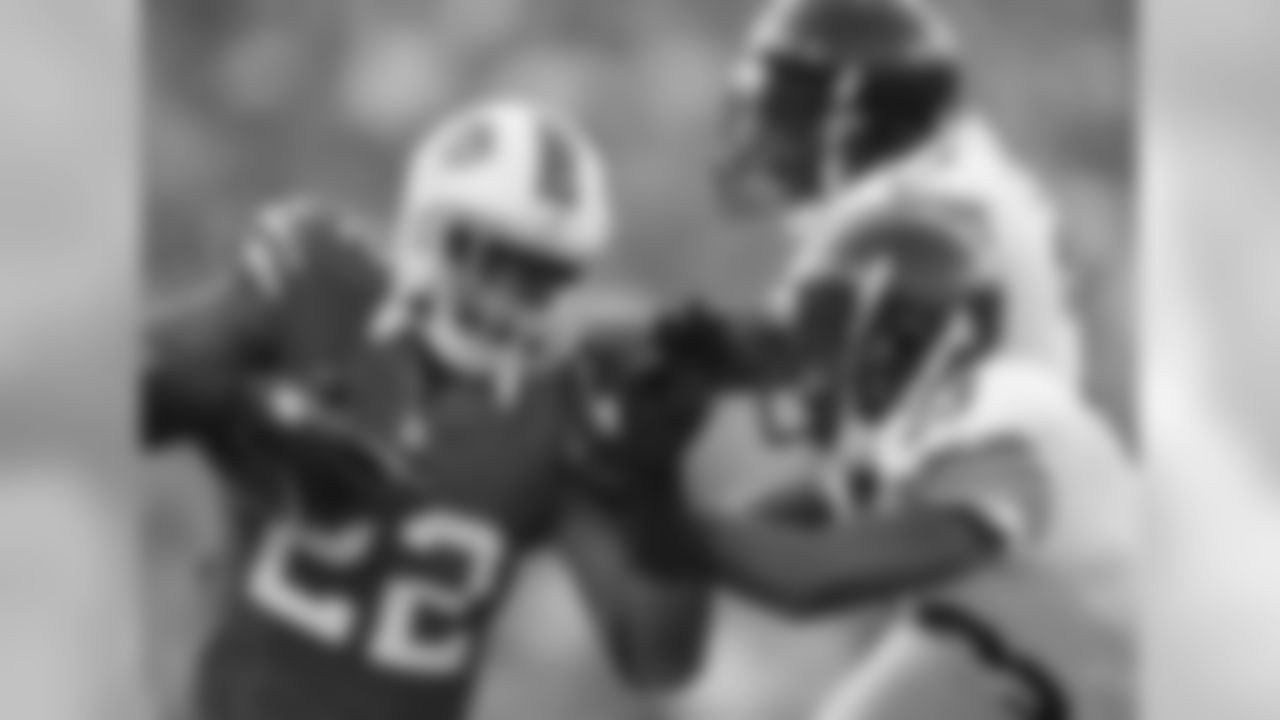 Buffalo Bills' Fred Jackson (22) runs under pressure from Pittsburgh Steelers' Lawrence Timmons (94) during the first quarter of a preseason NFL football game in Orchard Park, N.Y., Saturday, Aug. 25, 2012. (AP Photo/Doug Benz)