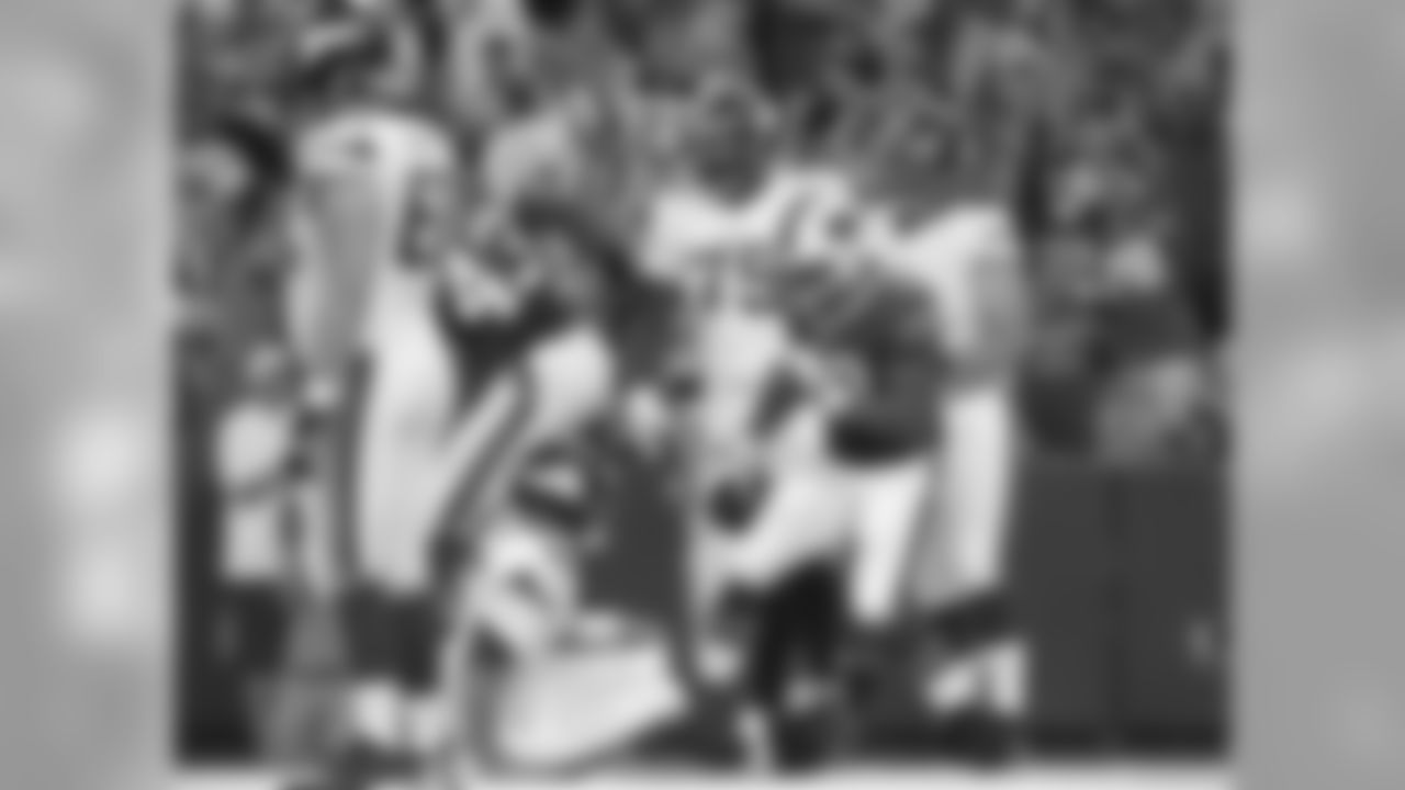 Buffalo Bills' Jamie Blatnick (58) celebrates after recovering a ball fumbled by Minnesota Vikings' Matt Cassel (16) for a touchdown during the first half of an NFL preseason football game Friday, Aug. 16, 2013, in Orchard Park, N.Y. (AP Photo/Bill Wippert)
