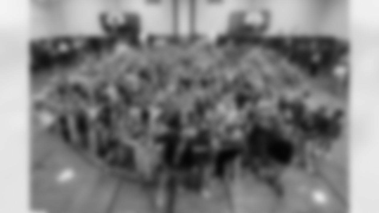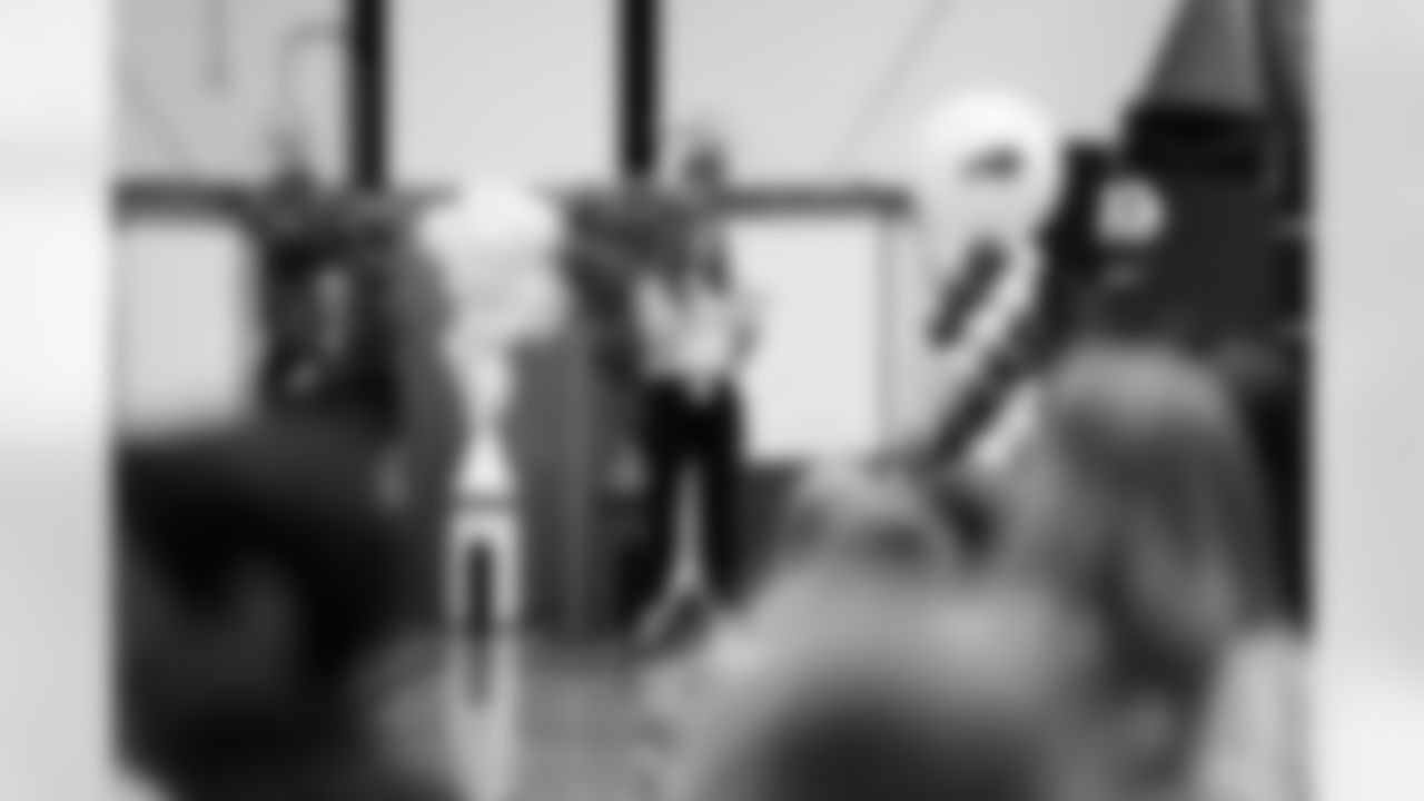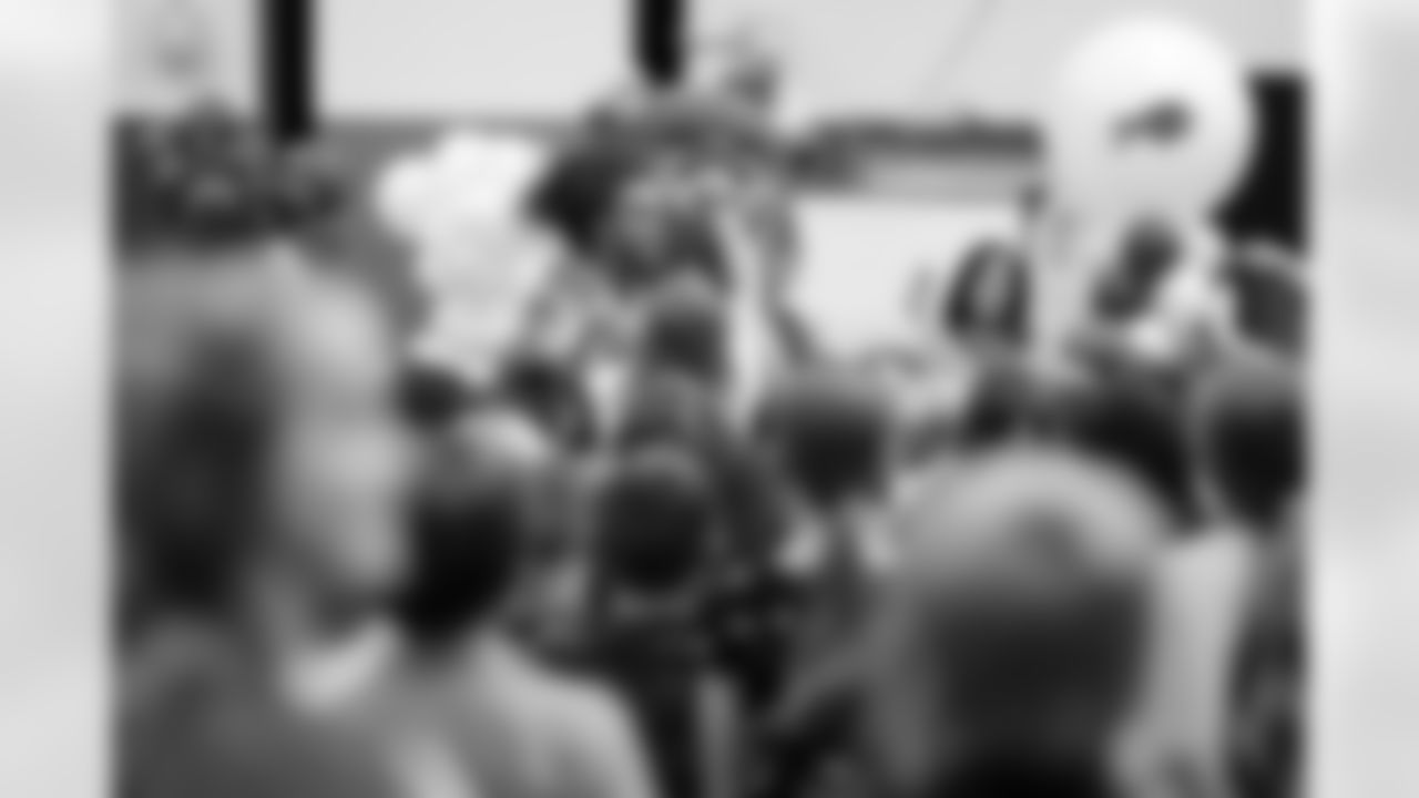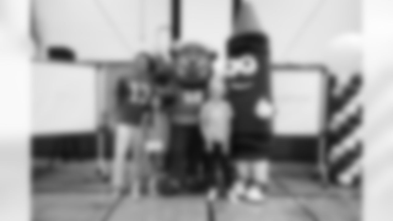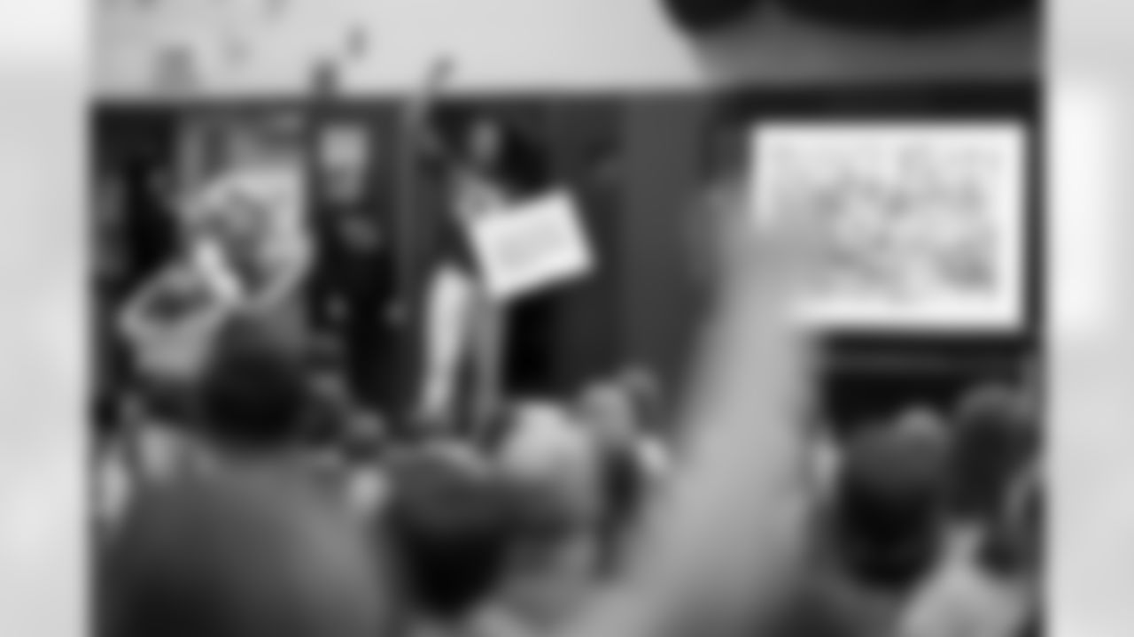 Mack Hollins and Billy Buffalo visited Ellicott Elementary school to return artwork to a former student Kailey Artiles. Crayola will make a product donation to the school and to The Teacher's Desk as part of the art return.
