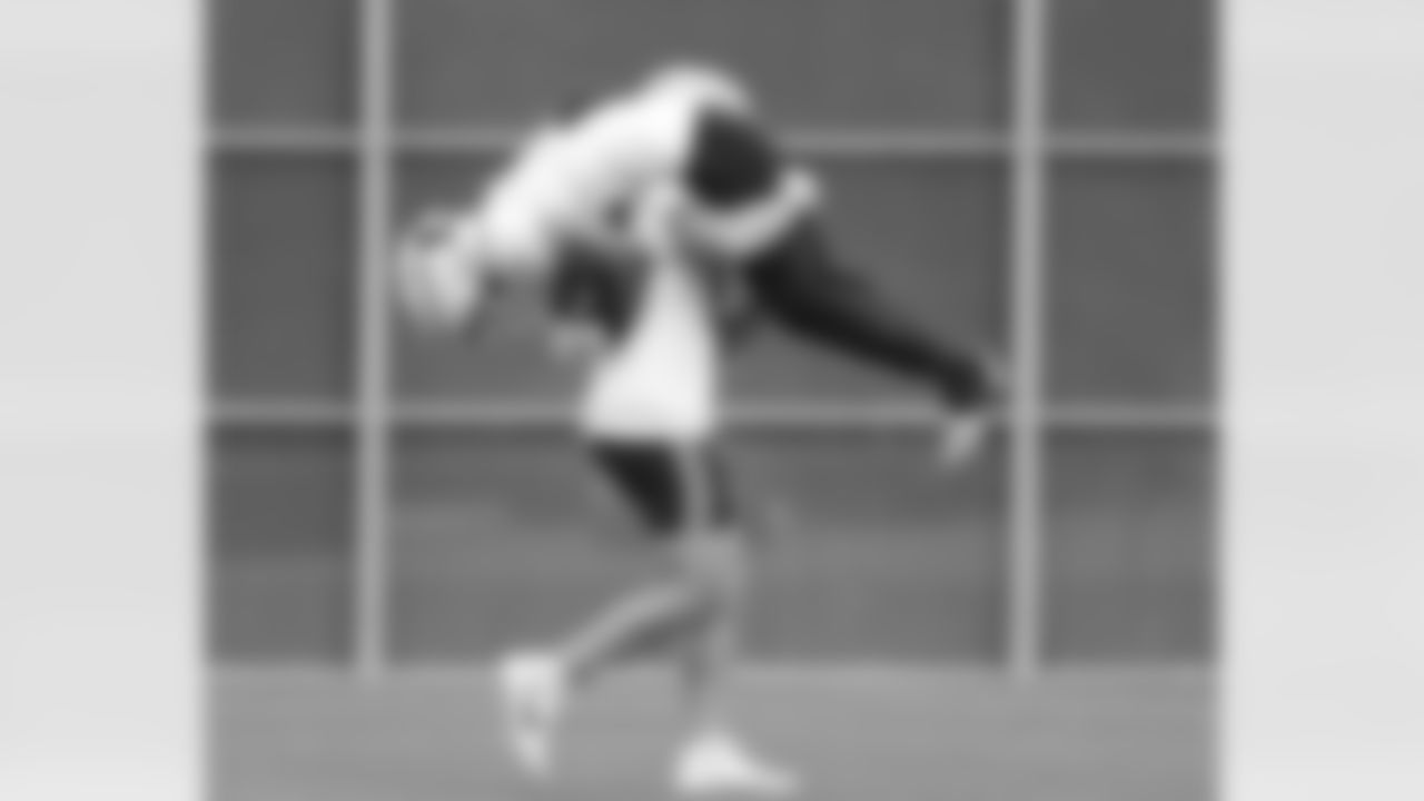 Mike Edwards (21), Mack Hollins (13). Buffalo Bills practice, August 28, 2024 at One Bills Drive.