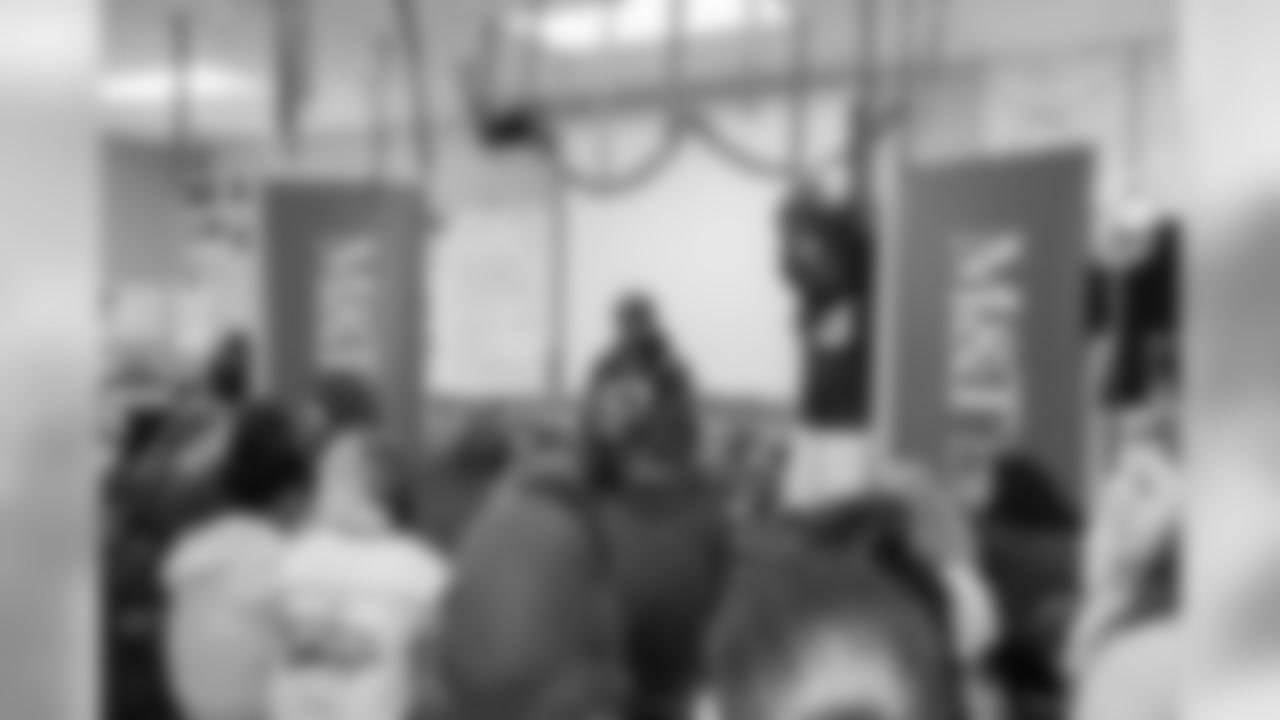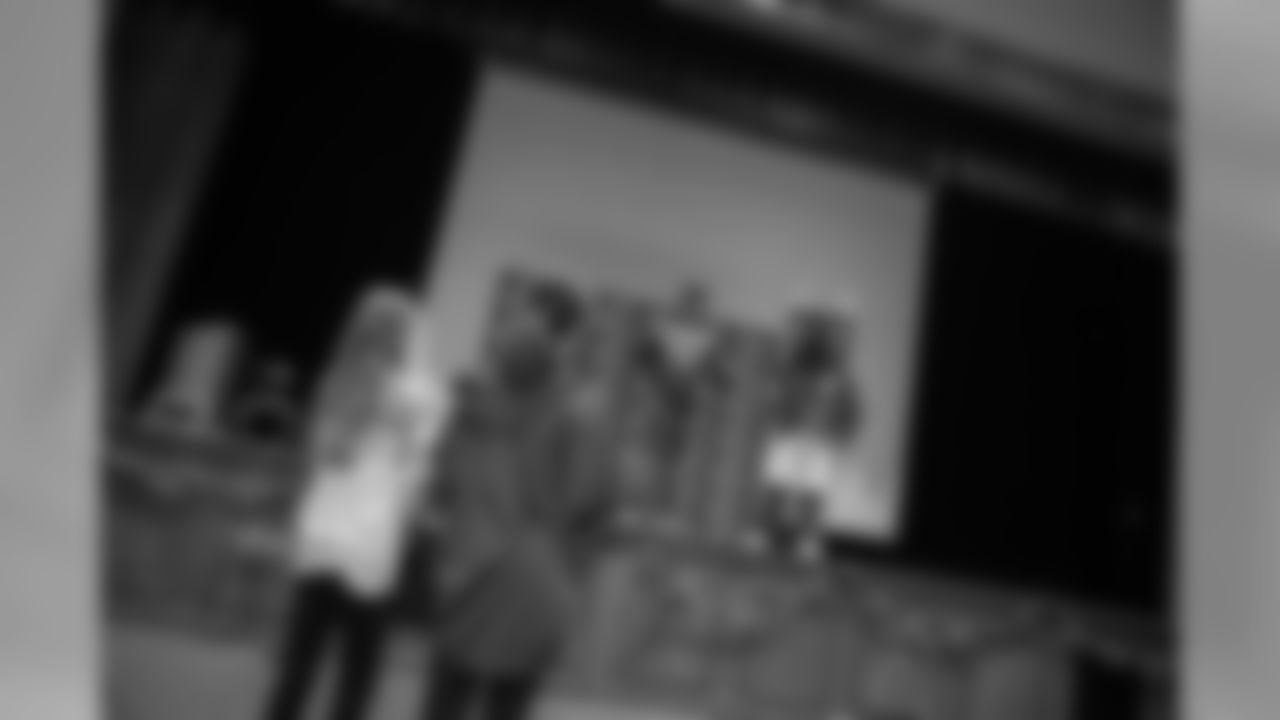 Lorenzo Alexander surprised Sweet Home Middle School teacher and M&T Bank Touchdown for Teachers winner, David Etkin.