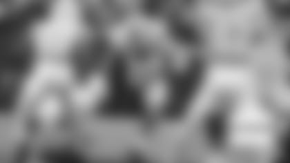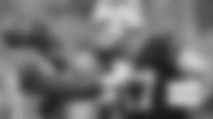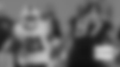 Spencer Brown (79) puts the football over the crossbar. Buffalo Bills vs New England Patriots - Wild Card Playoff game at Highmark Stadium, January 15, 2022. Photo by Craig Melvin
