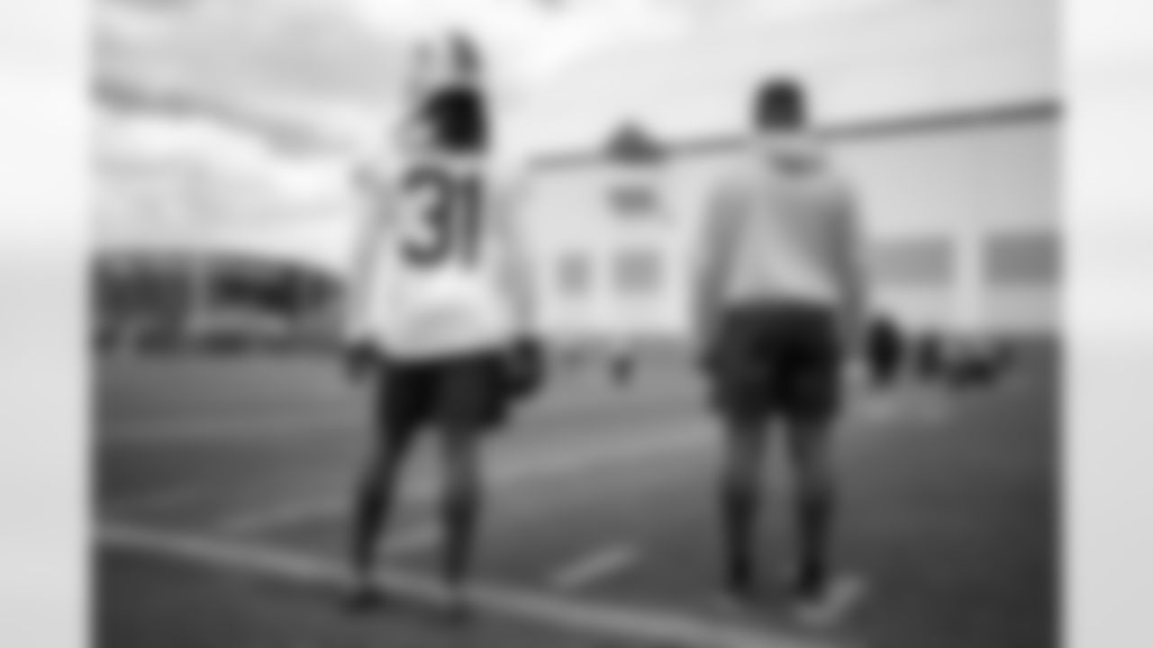 Dorian Strong, Jahmile Addae. Buffalo Bills Rookie Minicamp, May 09, 2025 at the Buffalo Bills Training Center.