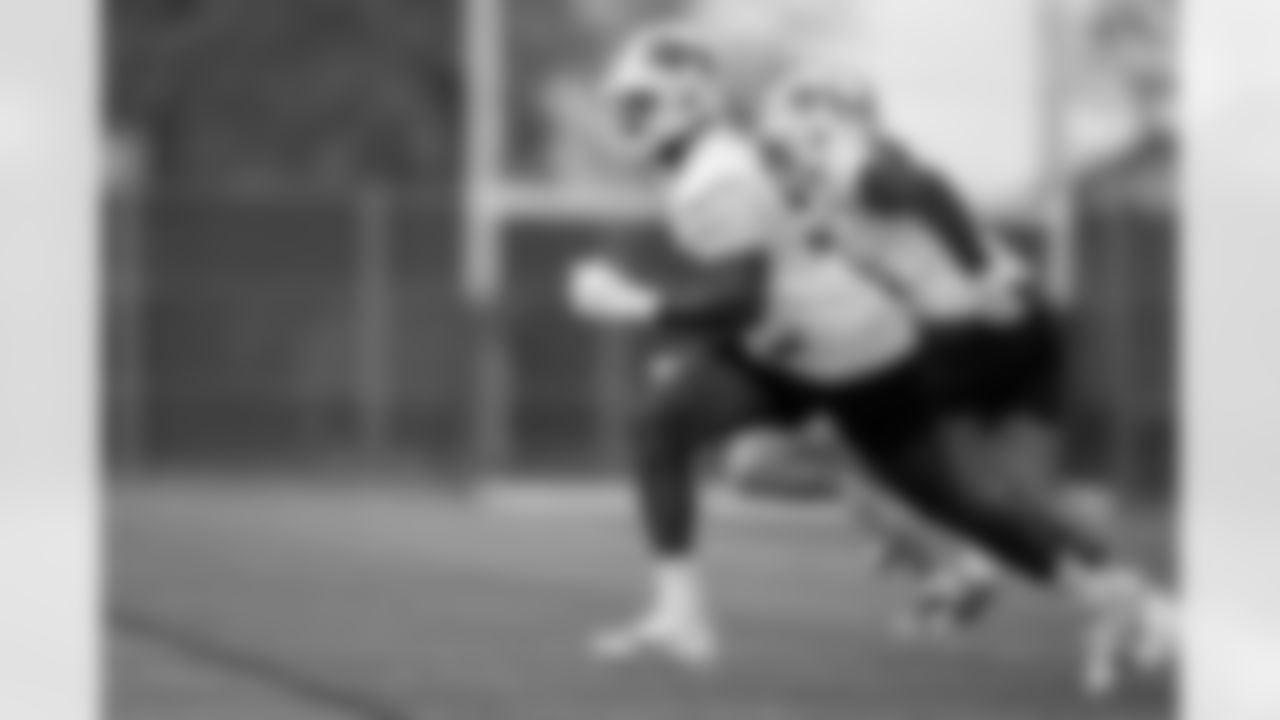 Landon Jackson, Matt Jaworski. Buffalo Bills Rookie Minicamp, May 09, 2025 at the Buffalo Bills Training Center.