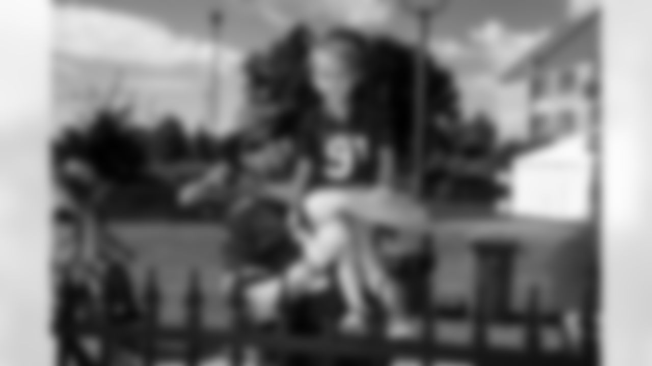 Tremaine Edmunds (49) and fans. Day 5 of Buffalo Bills Training Camp at St. John Fisher, July 29, 2022. Photo by Bill Wippert