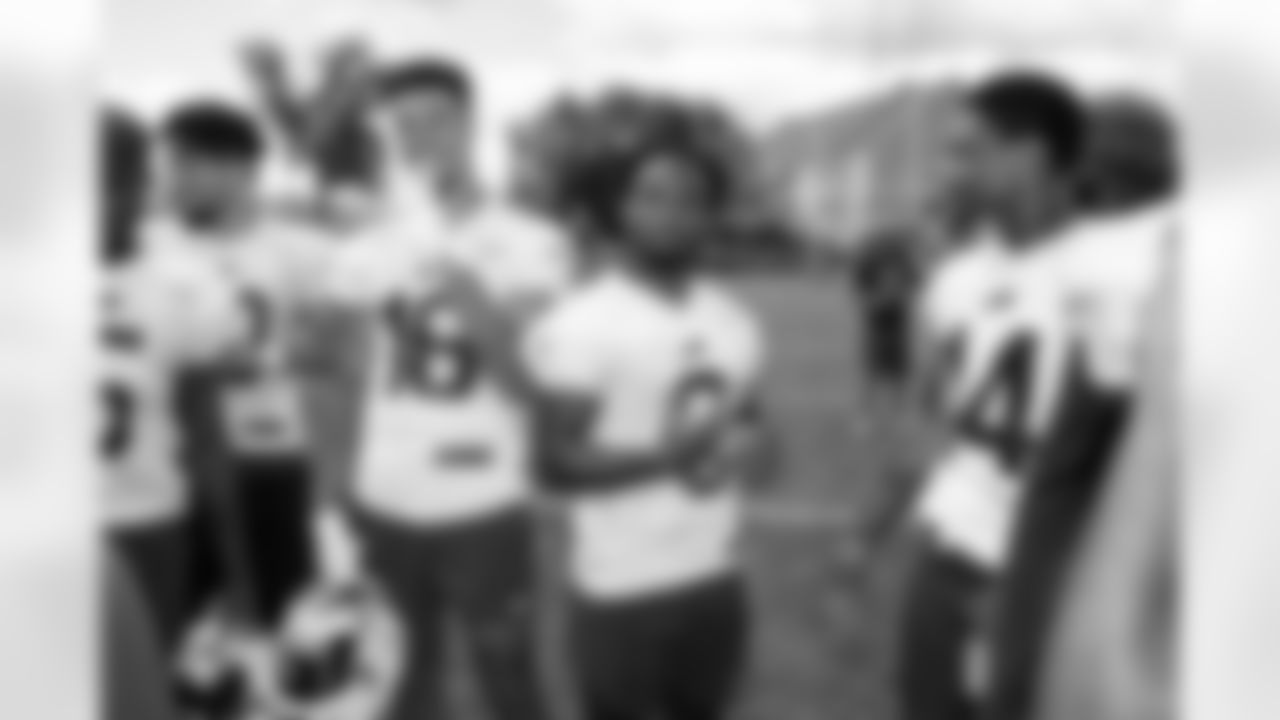 Josh Allen (17), Jordan Poyer (21), Isaiah McKenzie (6). Day 5 of Buffalo Bills Training Camp at St. John Fisher, July 29, 2022. Photo by Bill Wippert
