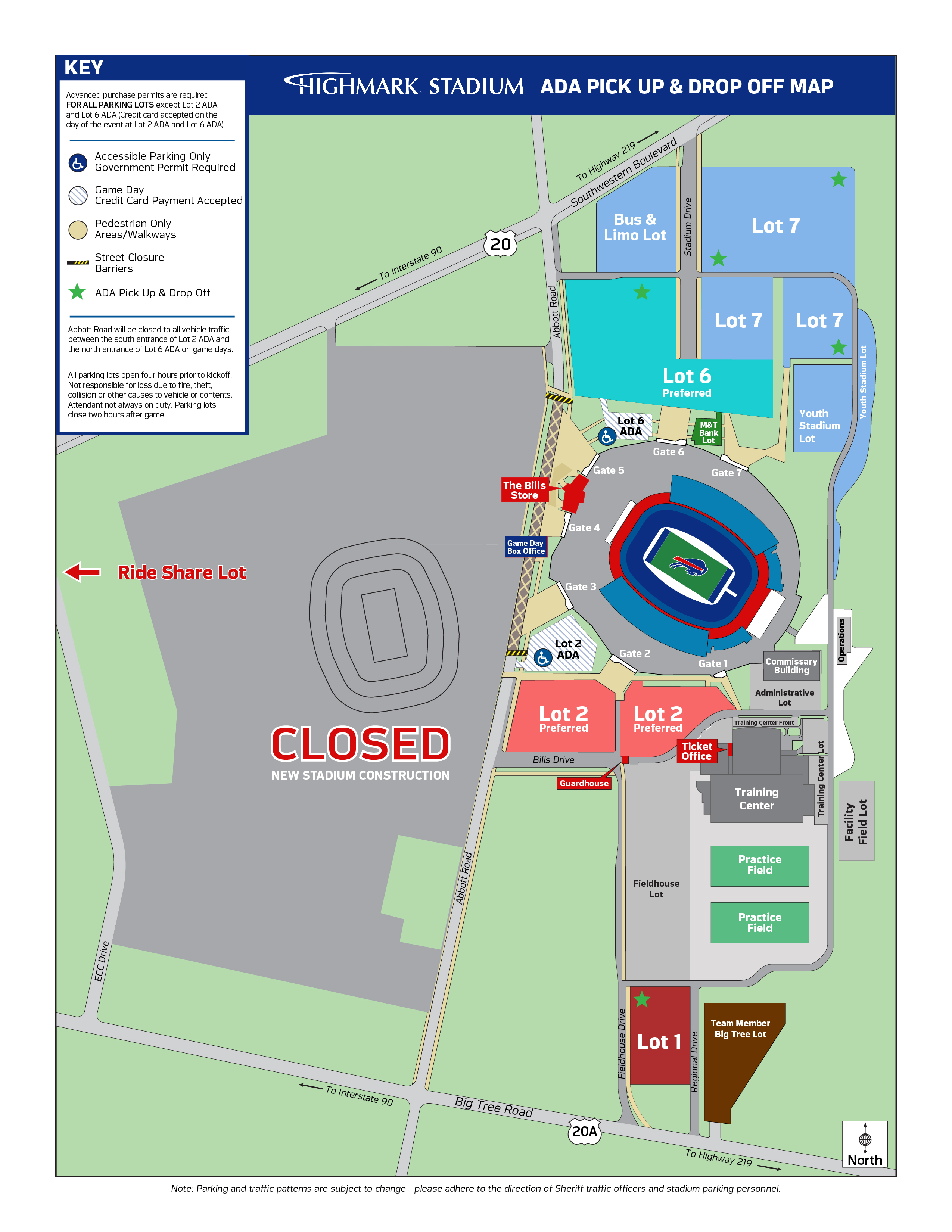 Non-Permit Holders should approach the lot from south of Highmark Stadium, utilizing Abbott Road northbound to turn into the parking lot prior to the road closure.